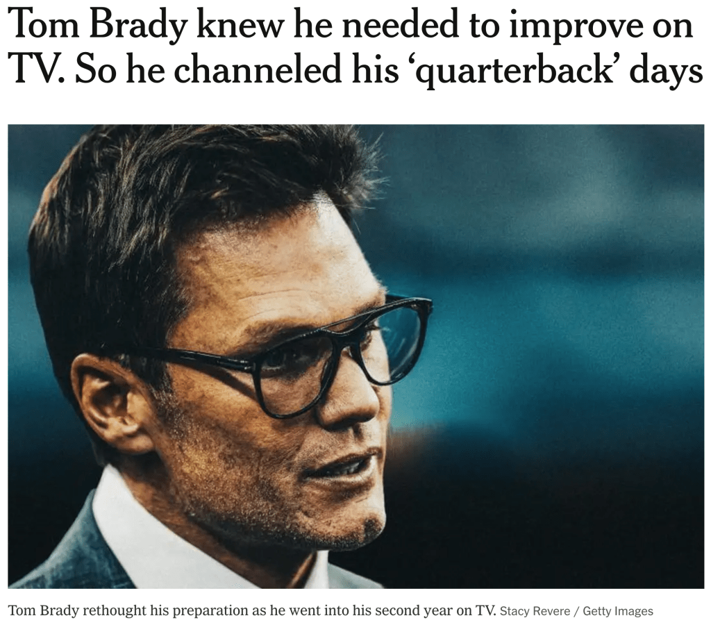 “I started to transition this year into, ‘Let me do more of how I did it as a quarterback,’ because that’s really where my comfort is,” Brady said. “As opposed to, ‘Let me try to prepare as a broadcaster.’”